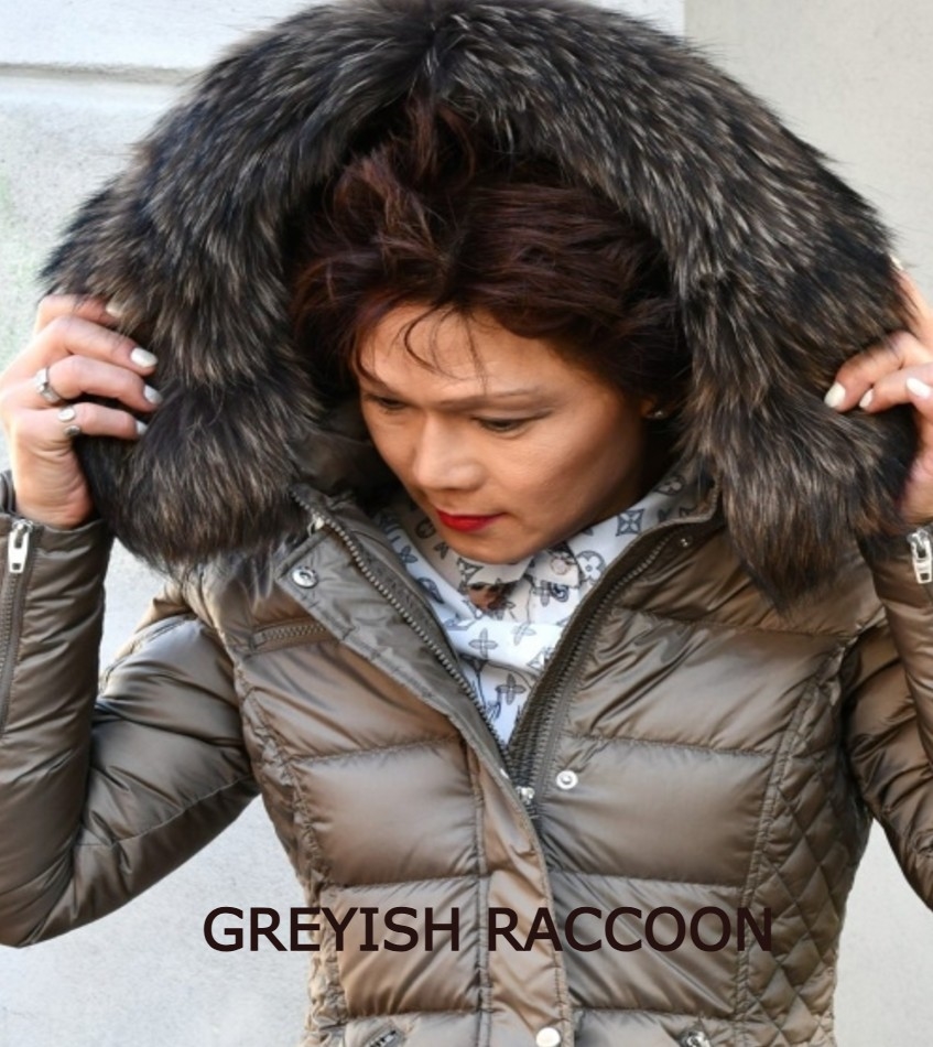 Materiale: Easy Nylon. Fyld: 80% dun / 20% fjer. Pels: Vaskebjørn.