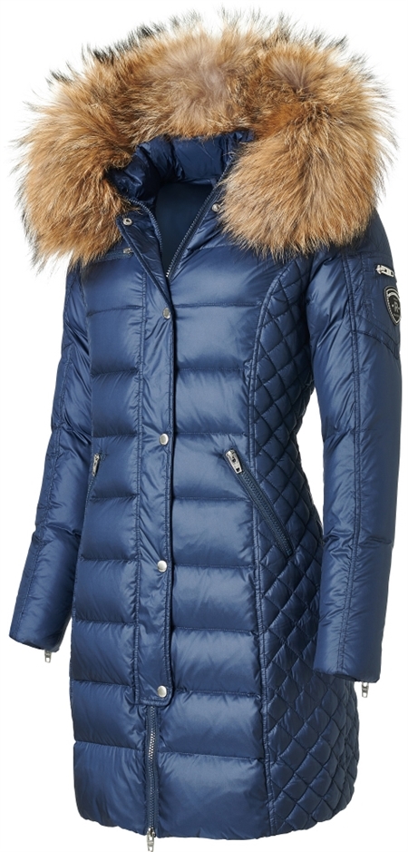 Elegant, sporty dunjakke med en ægte pelskrave i vaskebjørn fra Rockandblue, som sidder perfekt. Beam modellen med en længde på 90 cm går lige over knæene, er perfekt til den nordiske vinter. Jakken har mange flotte detaljer, såsom 2 inderlommer, kraftig dobbelt lynlås (Har du problemer med lynlåsen, se guiden her) og lynlås i ærmerne der fungerer som vindfang.