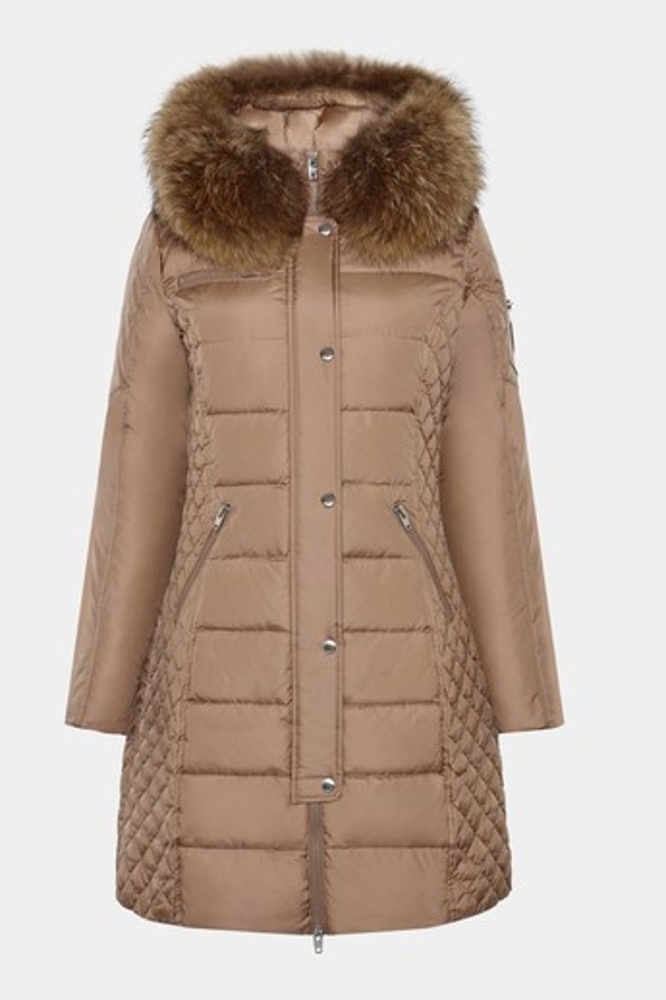 Elegant, sporty dunjakke med en ægte pelskrave i vaskebjørn fra Rockandblue, som sidder perfekt. Beam modellen med en længde på 90 cm går lige over knæene, er perfekt til den nordiske vinter. Jakken har mange flotte detaljer, såsom 2 inderlommer, kraftig dobbelt lynlås (Har du problemer med lynlåsen, se guiden her) og lynlås i ærmerne der fungerer som vindfang.