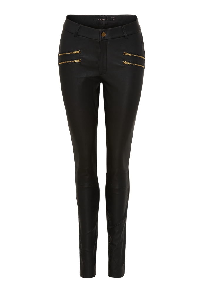 Eksklusive skindbukser i blødt og smidigt stretch-lammeskind, der sikrer en komfortabel pasform og flot facon hele dagen. Materialet indeholder lycra, som hjælper bukserne med at bevare formen og tilpasse sig kroppens bevægelser. Skindet er et biprodukt fra fødevareindustrien, er biologisk nedbrydeligt og et mere ansvarligt valg med fokus på bæredygtighed. Samtidig har materialet naturlig åndbarhed, som øger komforten.
