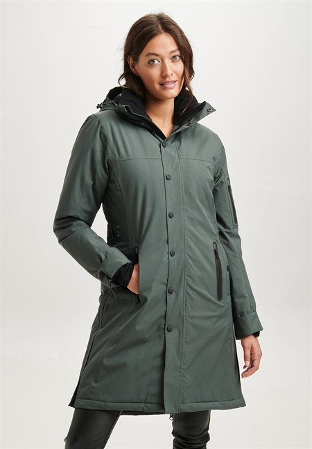 Et Must Have fra det danske, innovative brand, Notyz, som er kendt for design og kvalitet til konkurrence dygtige priser. Jakken er 100 % vandtæt. Målt til 10.000 mm vandsøjletryk (normale regnjakke er målt til ca. 4-5.000 mm). Stoffet er genanvendt polyester, som er åndbar og med et mellemfor af Thinsulate, som kan tåler ned til minus 20 grader, kan du holde varmen og vandet ude. Designet er multi funktionelt med mange muligheder. Den superblødt og lækkert inderkrave giver super komfort og varme. Hætten er aftagelig og kan justeres. Refleks, så der kan ses i mørket. Længden på 95 cm dækker jakke knæene og beskytte mod regn / slud. Der findes 2 lange lynlåse i siderne, som kan lynes op til cykling o.lign.