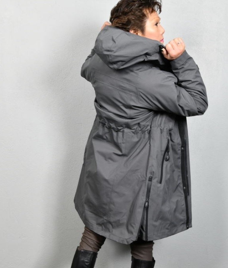 Unikt design fra det danske firma, Notyz, som er kendt for at være innovativ og følger med tidens mode. Jakken er lavet af kraftigt polyester og den aftagelig foer med Thinsulate for (som kan bruge som jakke også), kan tåler ned til - 20 grader. Jakken er vind- og vandtæt perfekt til det danske vinter, som er oftest meget våd. Designet er multi funktionelt med mange muligheder. Hætten er aftagelig. Langt lynlås i siderne som kan åbnes helt op til brug for eks. cykling.