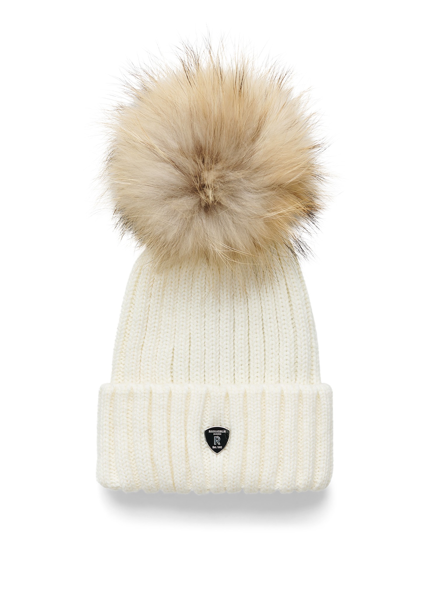 Pom Pom Beanie Hue - White / Natur Raccoon