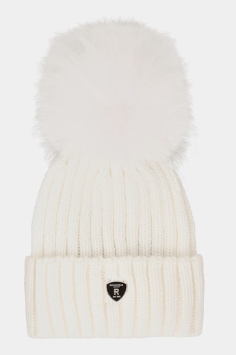 Pom Pom Beanie Hue - White / White Raccoon
