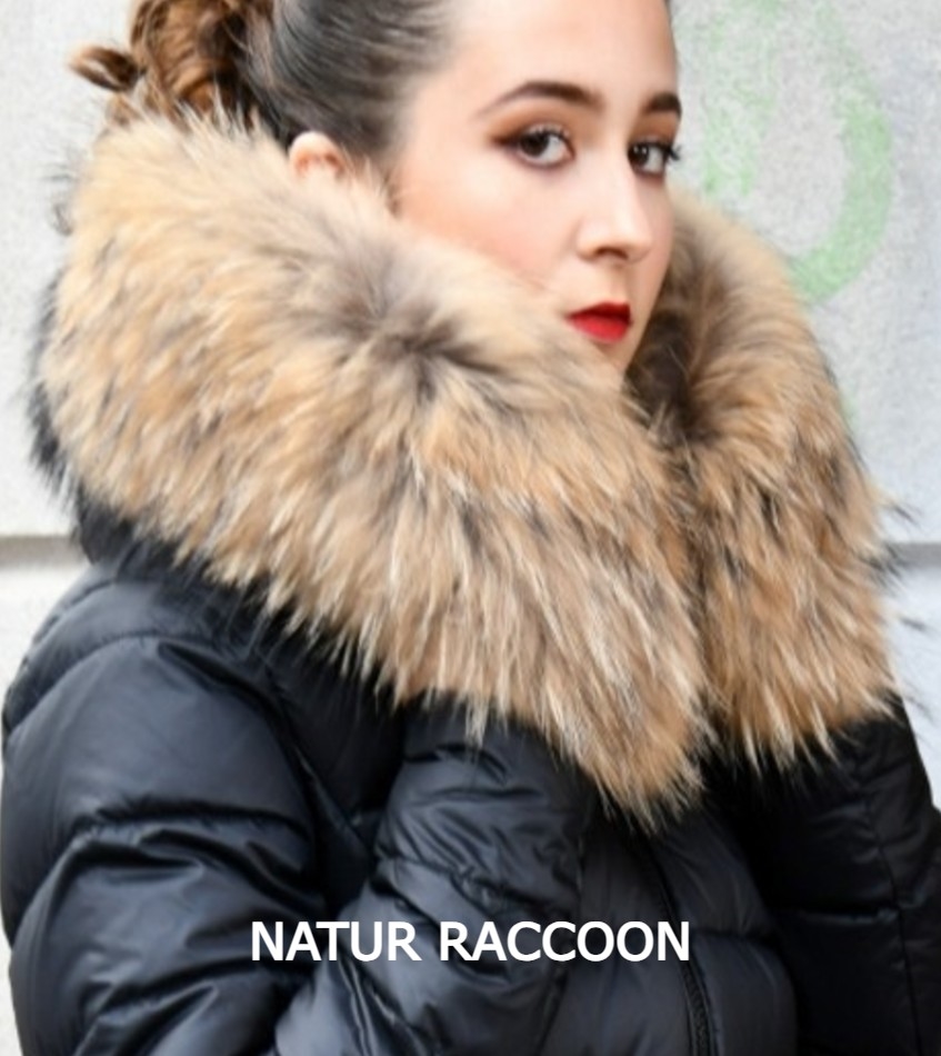 Materiale: Easy Nylon. Fyld: 80% dun / 20% fjer. Pels: Vaskebjørn.
