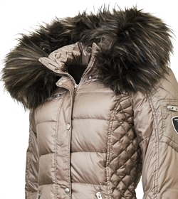 Eksklusiv dunjakke med en Faux Fur pelskrave fra Rockandblue, som sidder perfekt. Rita modellen har en længde på 63 cm, er sporty og kan bruges som både vinter- og overgangsjakke. De smukke guld detaljer giver jakken et elegant og feminint look.