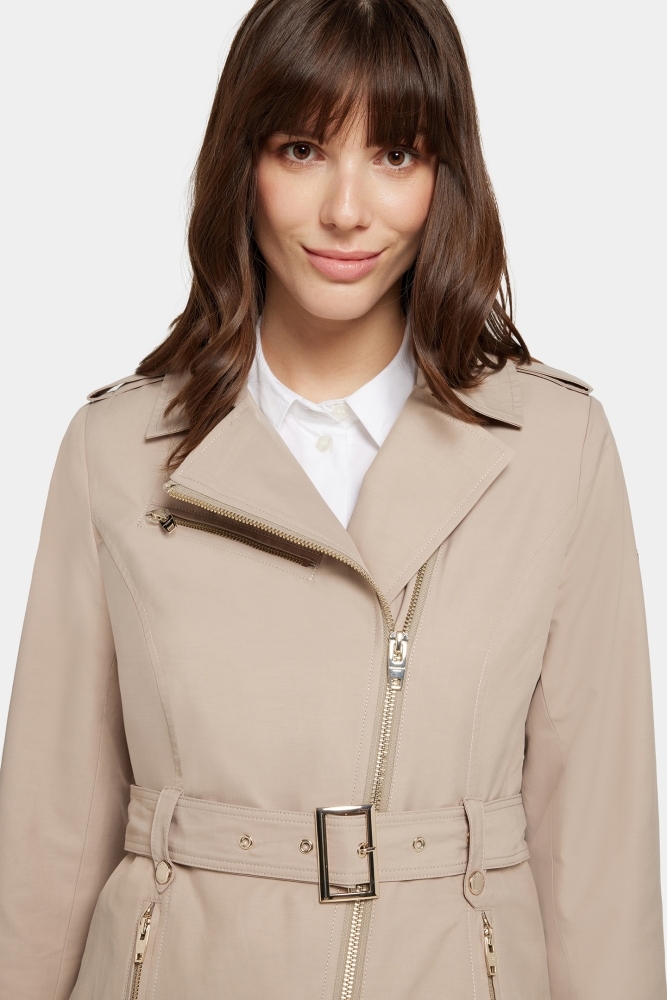 Rockandblue er kendt for deres design og kvalitet. Denne Trench Coat er figursyet-fremstillet i en kvalitetsblanding af  Bomuld, Polyester og Nylon. Jakken kombinerer moderne design med praktiske detaljer, og dens kortere længde på 79 cm gør den ideel for dig, der ønsker en let jakke til at cykle eller køre bil.