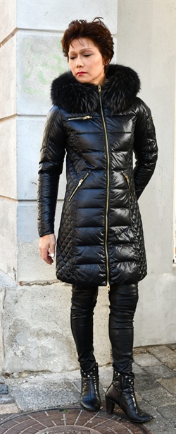 Den flotte Raccoon / Vaskebjørn i farven Black giver jakken et elegant look og giver ekstra varme, da pels isolerer kulde og blæst.