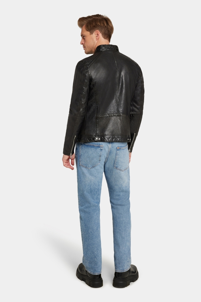 Figursyet perfektion med eksklusiv finish. Advance II fra Rockandblue er en bestseller, skabt til dig der vil have en skindjakke med markant pasform og moderne kant. Jakken er fremstillet i håndvokset lammeskind, der giver et råt, patineret look og en blød komfort, du mærker med det samme.